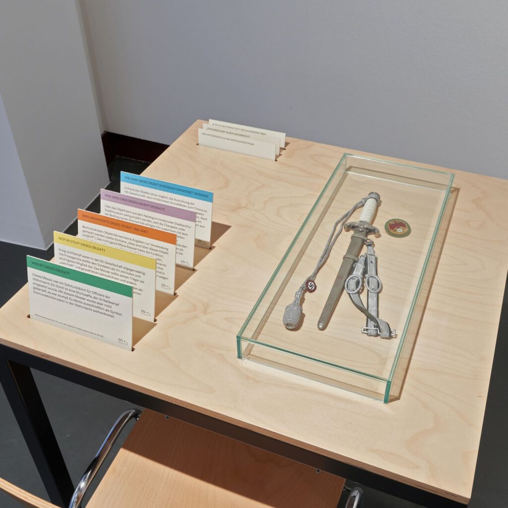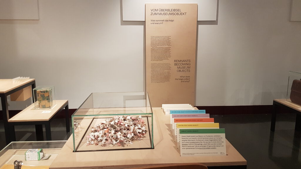 Zu diesen Fragen hat das Haus der Geschichte Österreich (hdgö) letztes Jahr eine erfolgreiche Ausstellung gezeigt und dafür den griffigen Titel „Hitler entsorgen. Vom Keller ins Museum“ gewählt. Schon mit der Eintrittskarte bekamen Besucher*innen eine Entscheidungskarte und sollten damit die oben genannten Fragen für ein Objekt, das viele von uns im Keller haben könnten, beantworten. Zur Vertiefung des Themas wählte die Ausstellung 14 Objekte mit NS-Bezug, die dem hdgö bei Sammlungsaufrufen übergeben worden waren.