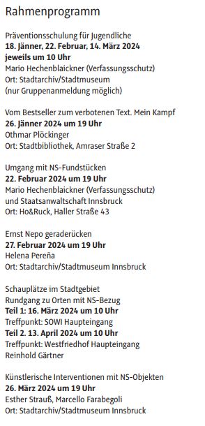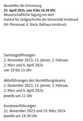 Das Stadtarchiv/Stadtmuseum Innsbruck zeigt nun eine lokale Fassung dieser Ausstellung. Wir ergänzen die Wiener Ausstellung mit Objekten aus unseren Beständen sowie aus befreundeten Innsbrucker Archiven und Sammlungen. Den Untertitel haben wir für unsere Ausstellung deshalb ein wenig verändert, weil Archive auch andere Aufgaben haben als ein Museum.