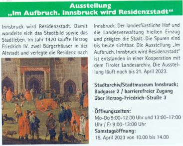 Die Ausstellung „Im Aufbruch. Innsbruck wird Residenzstadt“ ist entstanden in einer Kooperation mit dem Tiroler Landesarchiv.